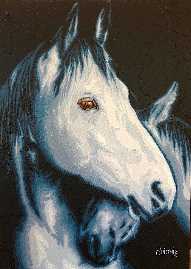 Avec l'acrylique je traduis ma sensibilité pour la " Beauté éphémère d'un instant " de l'être vivant.